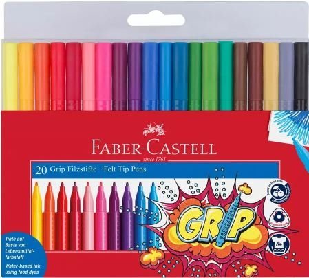 Ergonomiske tusser fra Faber Castell, i trekantet form og med dupper, som gør at tusserne er lette at holde på.