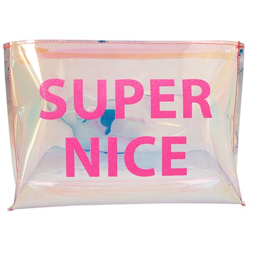 Super flot penalhus fra TOPmodel i særlig model - gennemsigtig med pink farve og skriften "Super nice". Dette penalhus fra TOPmodel kan også bruges som sminke eller toilettaske. Penalhuset / toilettasker måler: Længde: 9 cm Bredde: 26.5 cm Højde: 19 cm Vægt: 0.152 kg